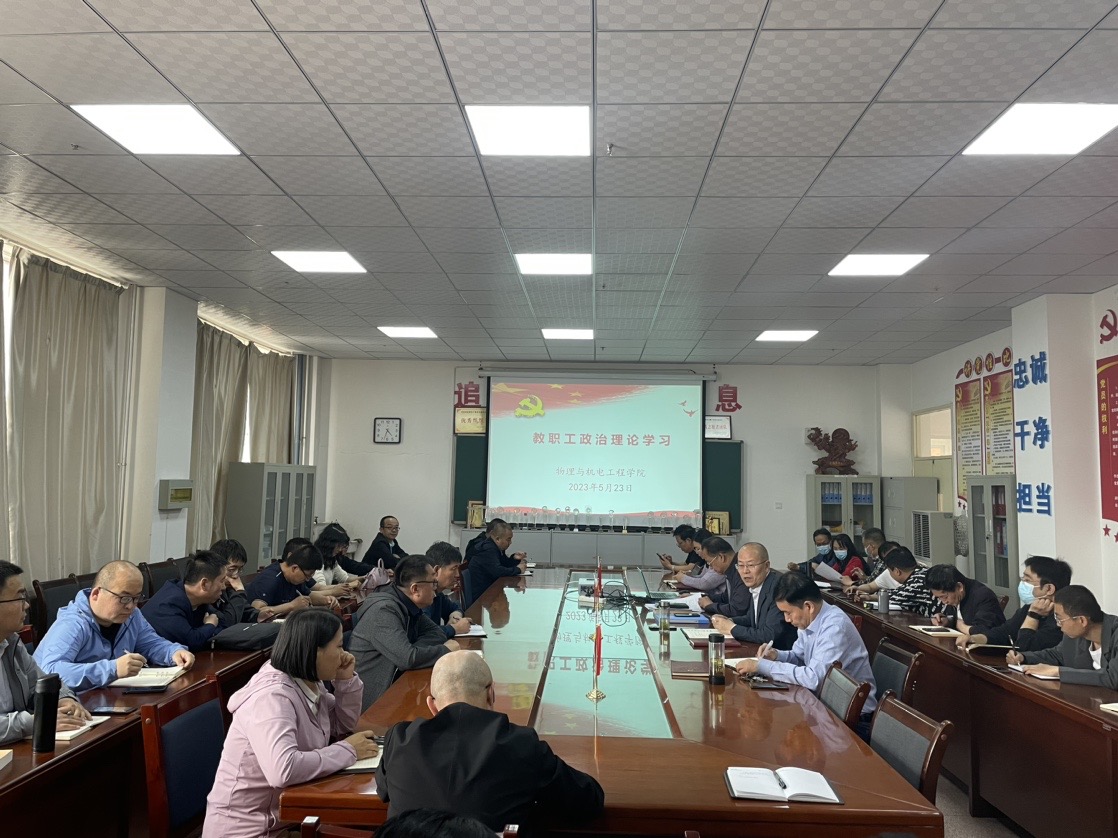 为了切实推动学习贯彻习近平新时代中国特色社会主义思想主题教育和“三抓三促”行动走深走实,2023年5月23日下午,世界杯8833300足球在理工实验楼209室召开教职工政治理论学习专题会议。