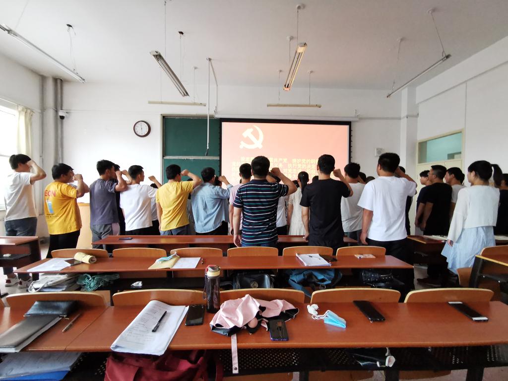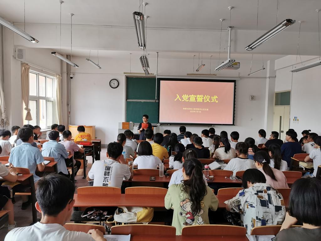 学习结束后,入党宣誓仪式正式开始。在庄严的《国际歌》中,全体肃立;新发展的36名预备党员,面向党旗,举起右手庄严宣誓,老党员重温了入党誓词;各支部支委为新发展的党员佩戴了党徽;预备党员代表杨丽洁同志和入党积极分子代表李思阳分别发言,表示要牢记党的宗旨,发扬党的优良传统,在学习和生活中充分发挥党员先锋模范作用,努力学习,为全面建成小康社会、实现中华民族伟大复兴的中国梦贡献自己的力量!