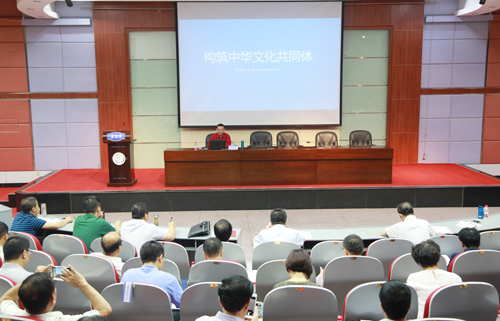 纳日碧力戈教授以《构筑中华文化共同体》为题,由道德经的启示而发,引经据典,对构筑中华各民族共有精神家园作了系统阐述。他在报告中指出,中国各民族的文化互联体是保障中华民族政治共同体的“根脉”,中华各民族文化要为祖国认同、道路认同提供长期稳定的人文基础。