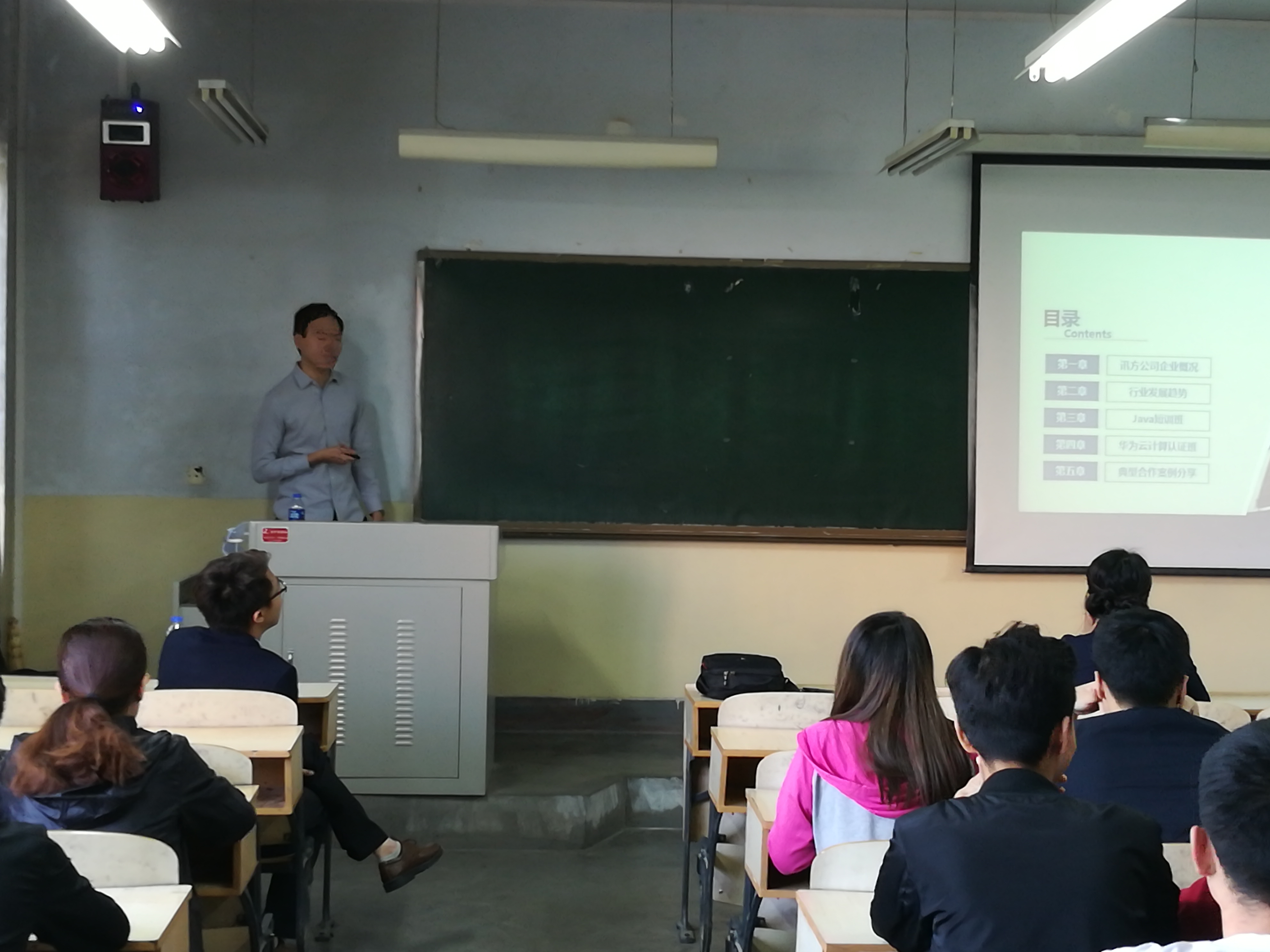 讯方公司讲师张俊豪从行业发展、就业岗位分析、就业途径选择、短期培训、华为认证培训等方面为同学们做了就业指导,分享了求职案例,并围绕校企 “3+1”合作模式、创新创业及“实习带就业”等方面与同学们进行了交流,征求同学们的意见和建议。