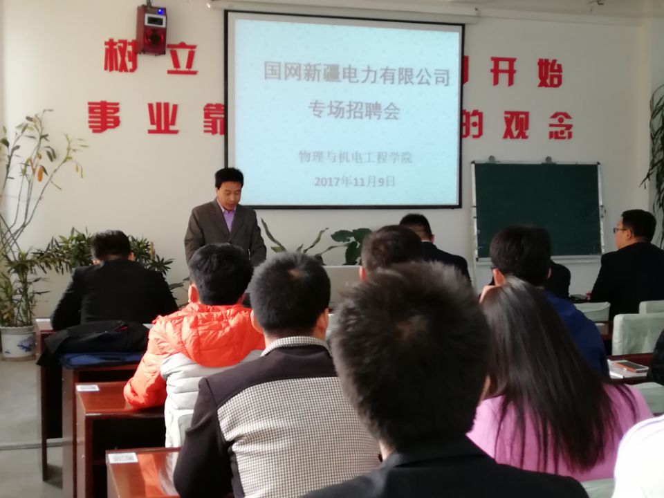 招聘会上,应聘员工身着正装,精神焕发,整个会场座无虚席,同学们观看了国网新疆电力公司的宣传片,奎屯供电公司负责人王文博介绍了新疆电力公司总体概况,对本次招聘流程、招聘条件、员工的薪酬待遇等做了详细的说明。最后,阿勒泰地区供电公司负责人幸彦海就员工关注的热点问题做了逐一解答。应聘同学抓住机会,积极与各地区供电公司负责人进行沟通,最终有41名员工和新疆电力公司达成协议,并提交了三方协议,这些同学将参加12月的国家电网考试,初试合格后与该单位正式签约。