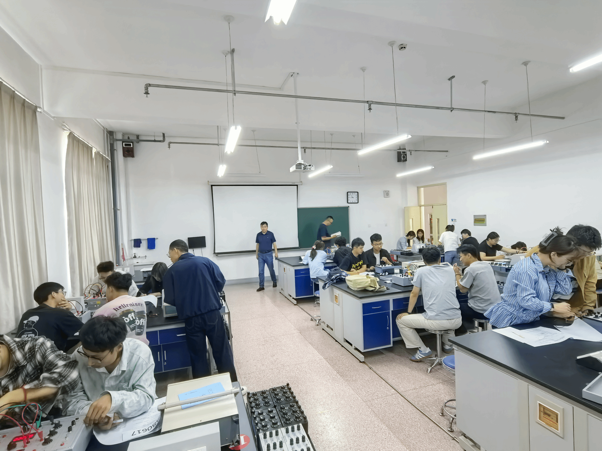 此次大赛分专业组和非专业组,由来自物理学、能源与动力工程和电气工程等专业同学组成的67个队参赛。本次大赛的赛制为两人组成一队,参赛队从力学、热学、光学、电磁学等四个学科的实验项目中随机抽取一个实验项目参赛。