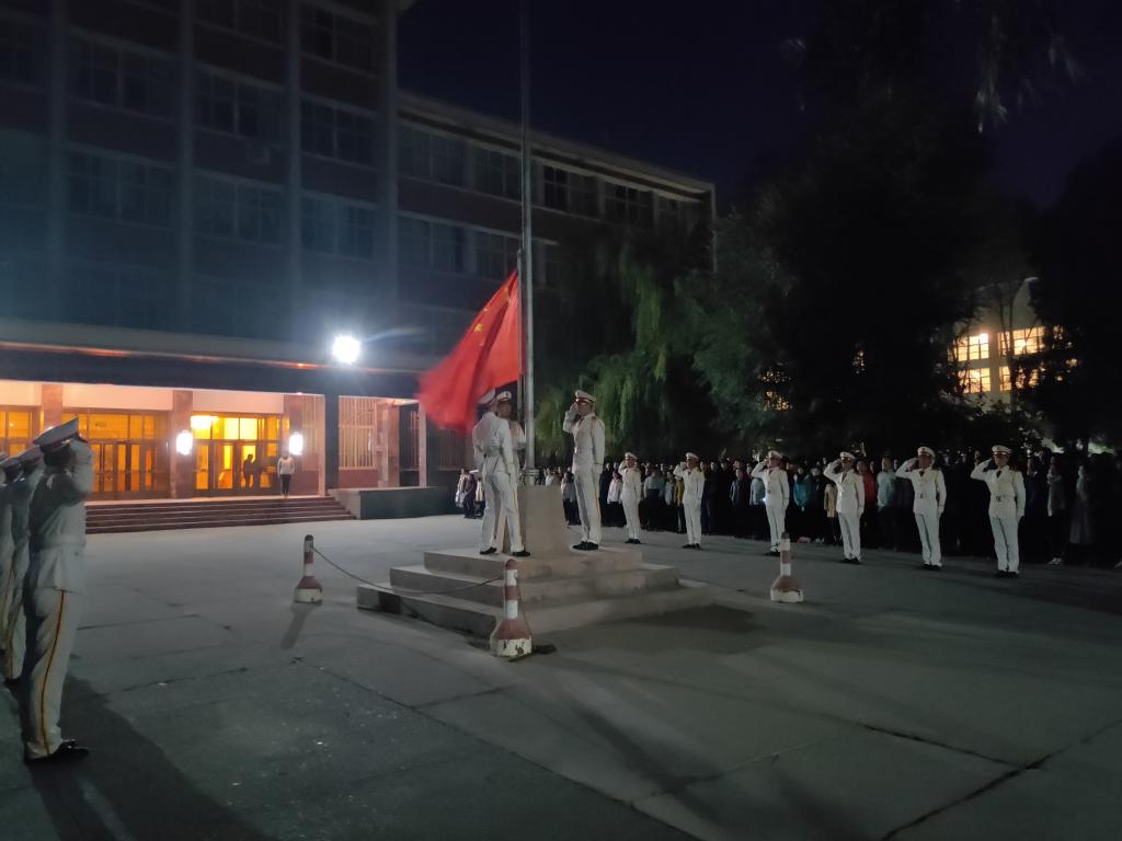 早晨6点45分,升旗仪式正式开始,伴着《义勇军进行曲》激昂的旋律,鲜艳的五星红旗冉冉升起,全体师生在严寒中庄严肃穆,随着伴奏齐唱国歌,并向国旗行注目礼。