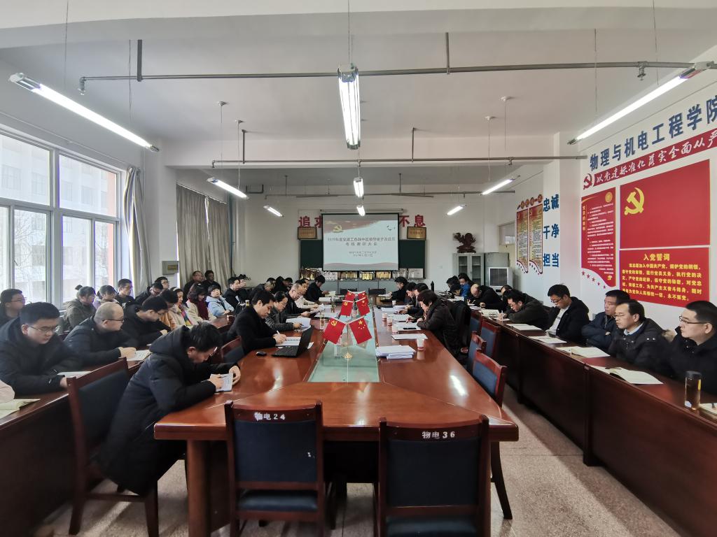 王兵指出,二级党组织党建工作考评是高校全面从严治党的重要举措之一,更是层层传导责任压力的表现,物电公司党建工作的总结汇报系统、全面、有深度,呈现四个亮点:一是党的思想政治建设取得新成效。党的组织体系建设规范健全;思想政治理论学习和党建工作符合上级要求;党务信息公开,党委的决策、议事规则比较完善;主题教育扎实开展,有效促进了公司各项工作的顺利开展。二是教学科研工作取得新进步。公司学科负责人+团队建设基本形成,教师的学历层次提升较快,发表学术论文的数量和质量明显提升,公司学术交流活动较多,员工在各类科技竞赛中屡创佳绩,考研率也大幅提升,教学科研成果显著。三是员工管理工作呈现新变化。员工日常管理更加规范和严格,社团活动丰富多彩,员工资助工作落实到位,毕业生就业率大幅提升。四是公司安全稳定工作落实到位,安全管理工作取得新突破。