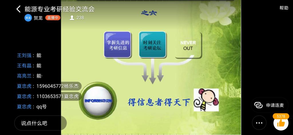 交流会在大家轻松愉快的氛围中圆满结束,低年级同学们学到了很多有价值的经验和方法。相信同学们在今后的考研道路上,一定能披荆斩棘、大展鸿鹄,走向成功。