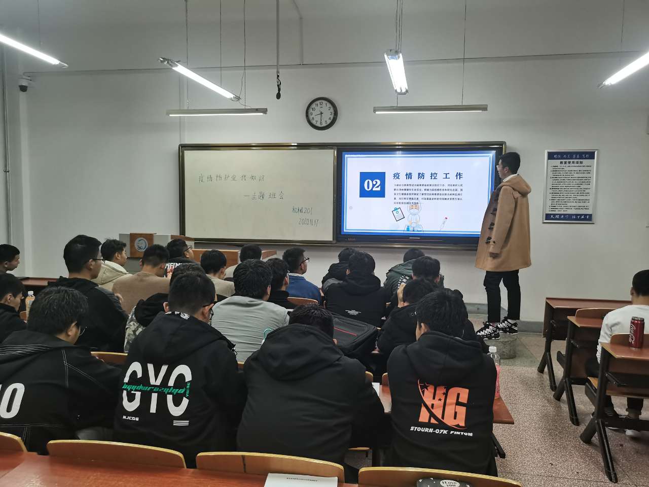 此次班会强调秋冬季节为呼吸道疾病高发期,每个同学都应做好个人防护,要全方位摸排安全隐患,要清醒地认识到,新冠疫情并未完全结束,所有人都不能抱有侥幸心理。