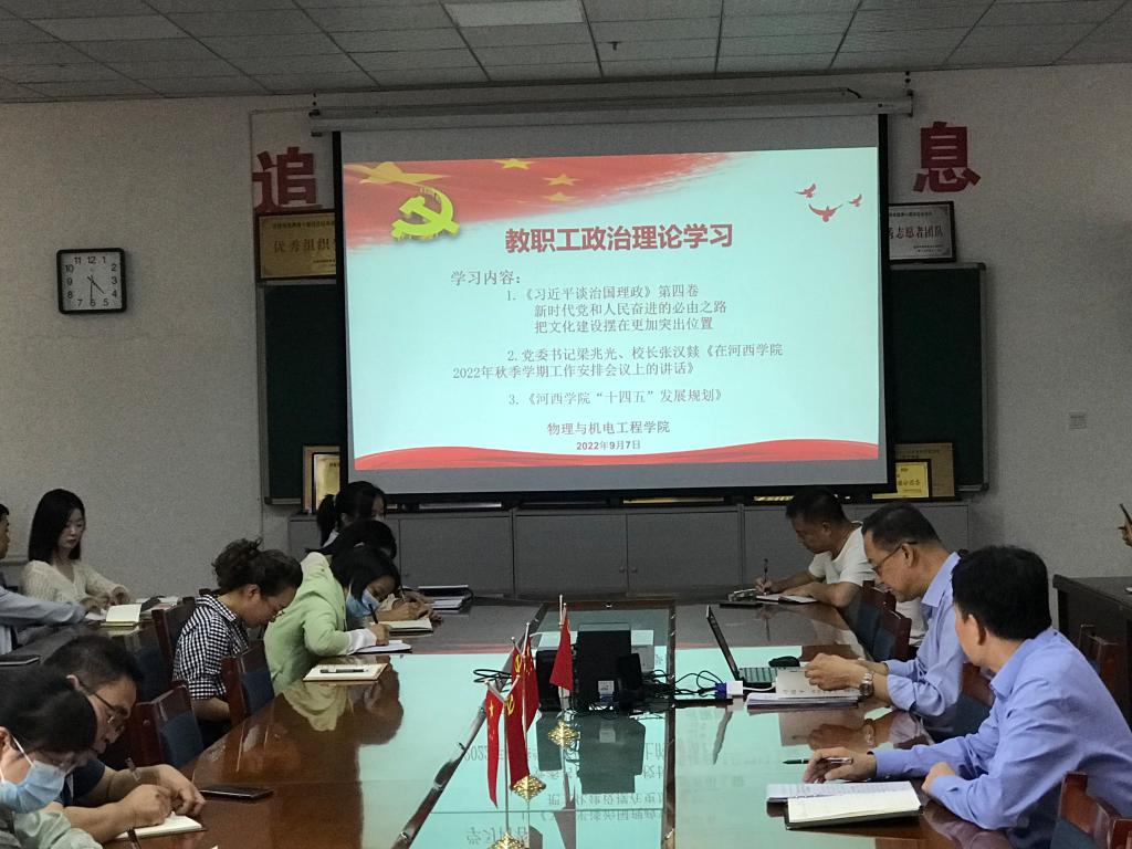 9月7日下午,公司召开了教职工政治理论学习会议,会议由公司党委负责人主持,全院在岗教职工参加了会议。