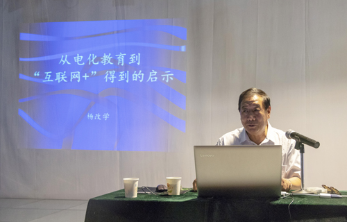 杨改学教授的报告,比较系统地梳理了从中国电化教育、到教育技术、再到教育信息化以及今天的“互联网+教育”40年的中国教育改革发展的历程,全面分析了各个历史阶段教育改革发展的特点和取得的成就,并从中总结了我们应该得到的启示:一是不忘本来,吸收外来,面向未来;二是要根据不同地域、经济、文化的差异来解决教育改革发展中的矛盾;三是要进行投入和获取的反比思考;四是要解决教育技术应用能力的问题;五是解决各级公司、教育行政部门对教育技术的认识问题;六是重视教育创新问题。杨改学教授认为,从电化教育到“互联网+”得到的启示,既是当前教育改革研究和实践的方向,也是高校相关专业人才培养要探讨和解决的问题。