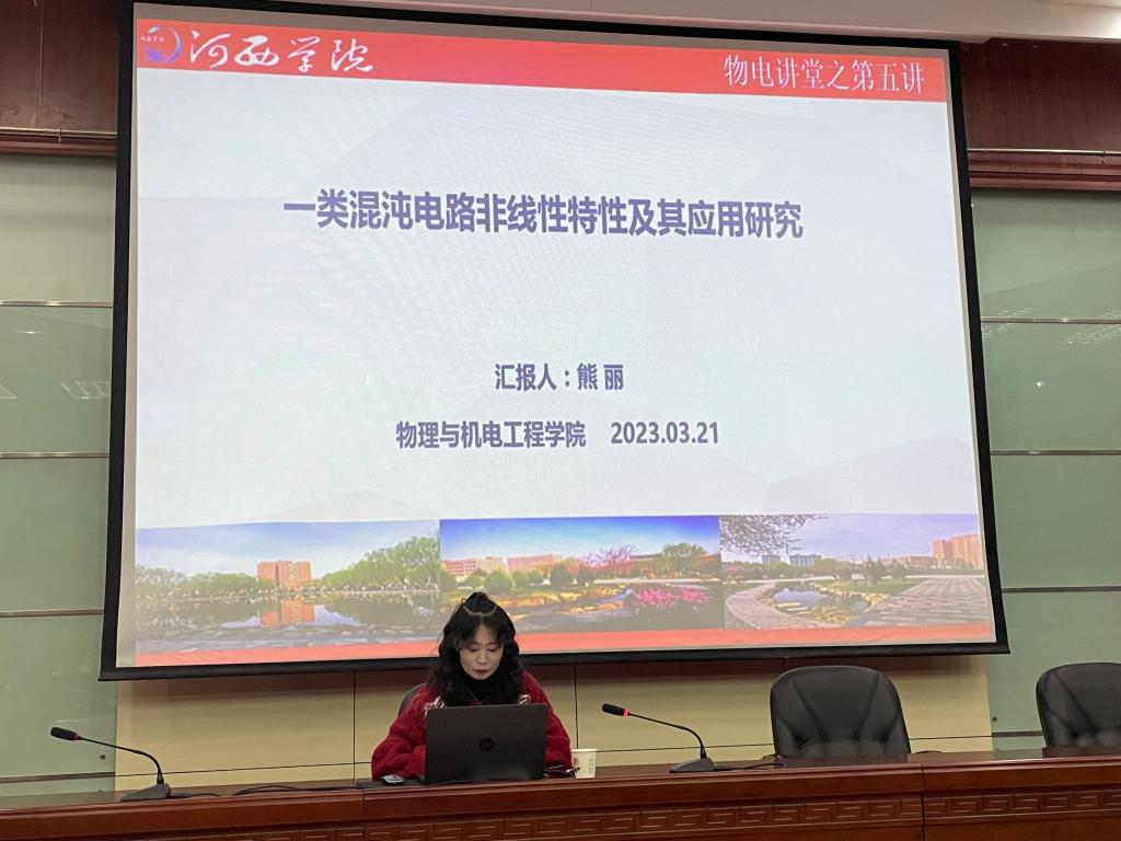 进一步培养当代老员工科学素养,帮助同学们熟悉科学知识,拓宽理论视野,提升科学思维能力,物电公司“物电讲坛”第5讲于3月21日下午在图书馆学术报告厅顺利举办公司教师熊丽教授王飞博士结合自己的研究领域,分别作了题为“一类混沌电路非线性特性及其应用研究”“颗粒物质自组织现象的模拟与理论研究”的学术报告。公司300多名师生参加了报告会,会议由公司科研工作负责主持进行
