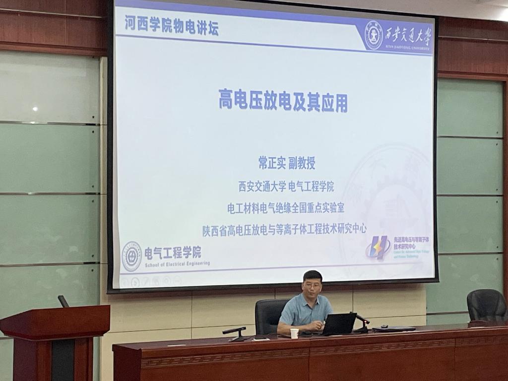 常正实副教授介绍了西安交通大学以及电工材料电气绝缘国家重点实验室的基本情况和特色优势,然后从自己成长经历出发,介绍了其求学经历,勉励同学们树立远大理想目标,努力学习。最后从高电压放电等离子体的产生机制讲起,谈到高电压放电在包括二氧化碳原位制燃料、氨气制氢等能源转化应用场景,再到等离子非热干燥杀菌技术在现代农业中的应用以及在材料表面功能化处理等众多应用。常教授面向世界科技前沿、人民生命健康等重大需求,突破瓶颈,潜心开展研究的精神令同学们肃然起敬。